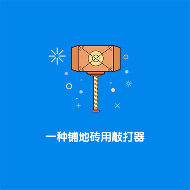 本发明公开了一种铺地砖用敲打器,包括敲打板、连接杆、固定箱、进料口、出料口,所述敲打板为中空设计,敲打板上开设有进料口,出料口开设在敲打板一侧,水平泡粘结在敲打板上部,所述敲打板内焊接有导流板,导流板的底部与出料口平齐,所述敲打板上焊接有固定箱,连接杆的底部开设有凹槽,齿轮通过凹槽与连接杆连接,连接杆在齿轮的作用下能沿固定箱进行前后移动,齿轮与手轮连接,且手轮位于固定箱外部,手轮的底部设有螺纹连接的固定插销,所述连接杆远离固定箱的一端开设有内螺纹孔。本发明结构简单,设计合理;中空设计的敲打板能根据情况改变敲打板的重量,水平泡能保证地面的平整。