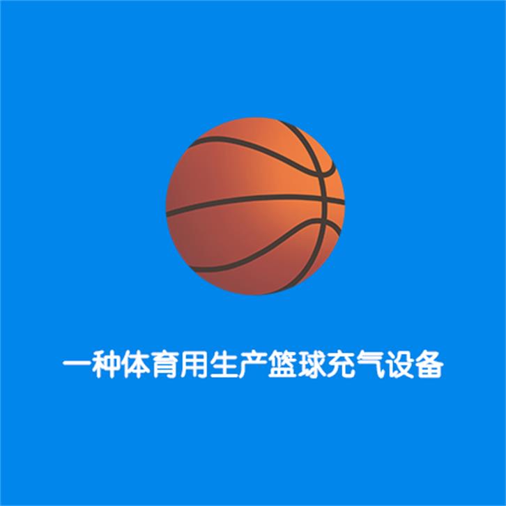 本发明涉及一种篮球充气设备,尤其涉及一种体育用生产篮球充气设备。本发明要解决的技术问题是提供一种充气效率高、充气时能够将篮球固定、充气时省时省力的体育用生产篮球充气设备。为了解决上述技术问题,本发明提供了这样一种体育用生产篮球充气设备,包括有底板、左支架、右支架、驱动机构、充气机构、放置板等;底板顶部左侧设有左支架,底板顶部右侧设有右支架,左支架右侧上部设有驱动机构,驱动机构右侧设有充气机构,驱动机构右端设有放置板。本发明达到了充气效率高、充气时能够将篮球固定、充气时省时省力的效果,本发明通过驱动机构工作,带动充气机构工作,进而对篮球进行充气。
